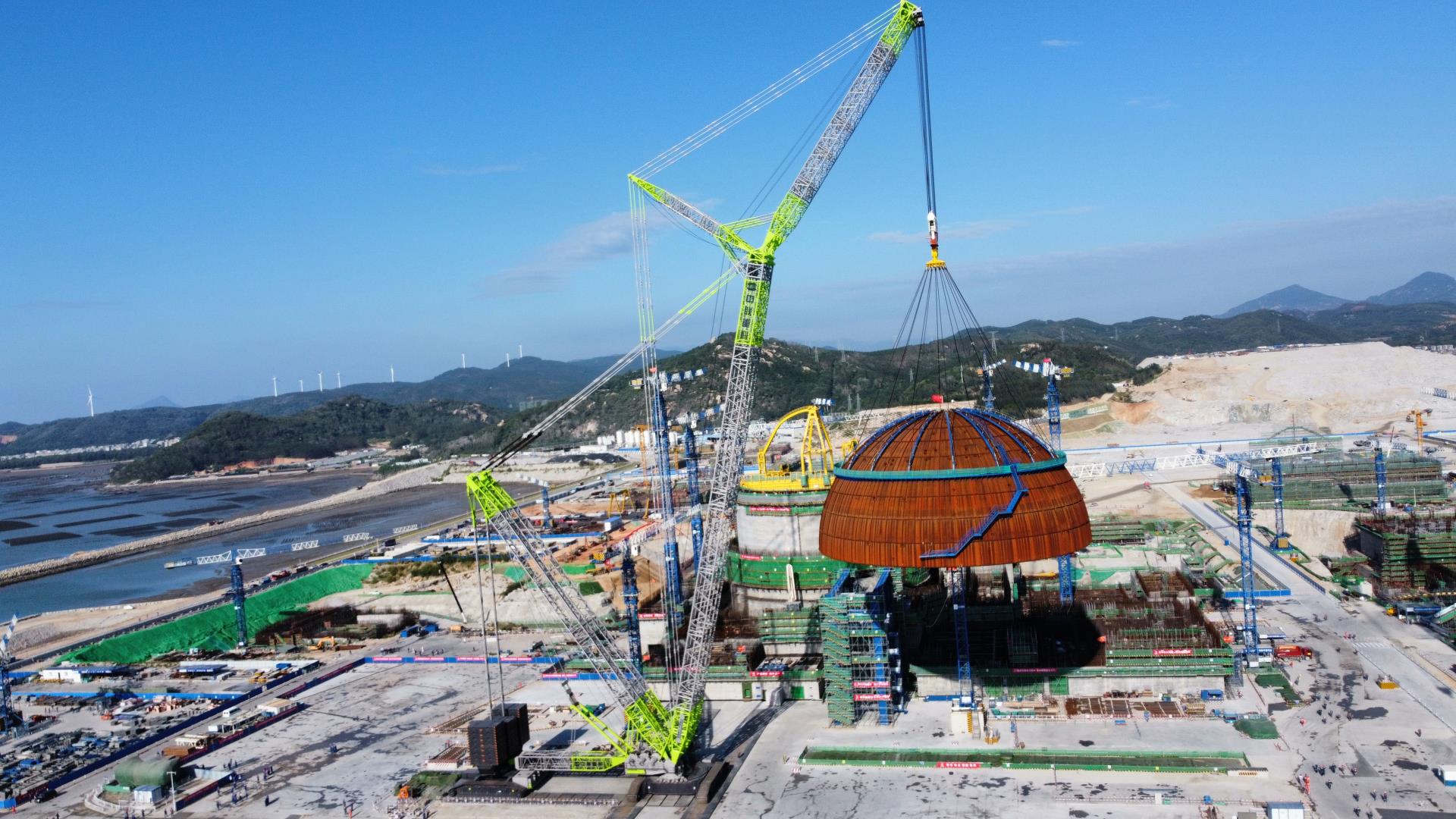 △中聯(lián)重科ZCC3200NP履帶式起重機進行漳州核電穹頂?shù)跹b