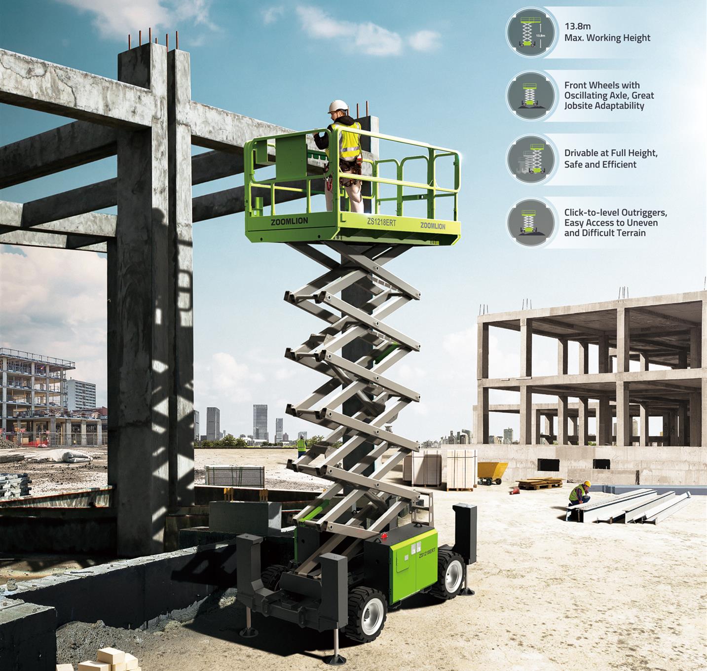中聯(lián)重科智能高機(jī)近年來高速發(fā)展,已位列英國(guó)KHL 2023年全球高空作業(yè)機(jī)械企業(yè)排行榜**7位,此次15款高空作業(yè)平臺(tái)將集中亮相,其中電動(dòng)化產(chǎn)品達(dá)到14款。以新品ZS1218ERT越野剪叉式高空作業(yè)平臺(tái)為例,它采用模塊化、輕量化、通用化、智能化等現(xiàn)代化設(shè)計(jì)手段,具有越野性能優(yōu)越、工地適應(yīng)強(qiáng)、維護(hù)方便快捷等特點(diǎn),搭配基于物聯(lián)網(wǎng)的租賃運(yùn)營(yíng)+設(shè)備監(jiān)控一體化管理平臺(tái),讓機(jī)隊(duì)運(yùn)營(yíng)管理簡(jiǎn)單高效。
