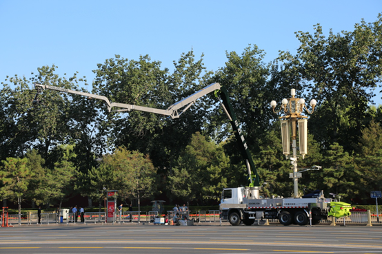 此次大閱兵拍攝,中聯(lián)重科派出包括兩臺80噸大型起重機,兩臺95噸大型汽車起重機,兩臺16噸汽車起重機,一臺60米亞洲**高云梯消防車,一臺53米消防云梯車,一臺33米泵車,全力配合閱兵直播。讓我們一起來看看位于天安門核心區(qū)域及長安街沿線的這些高端裝備產品是如何配合央視進行全球直播工作的?