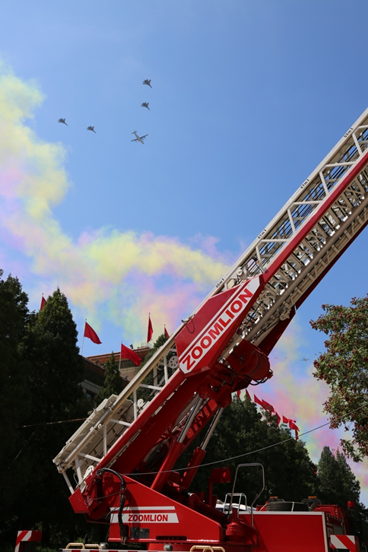 中聯(lián)重科YT53云梯消防車在大閱兵現(xiàn)場