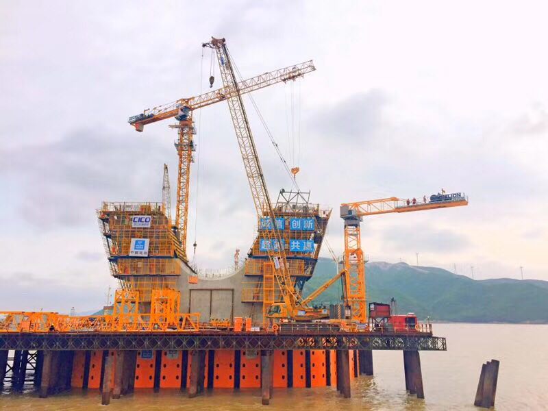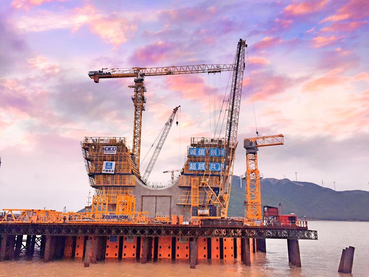 ▲中聯(lián)重科塔機(jī)助建舟岱跨海大橋
