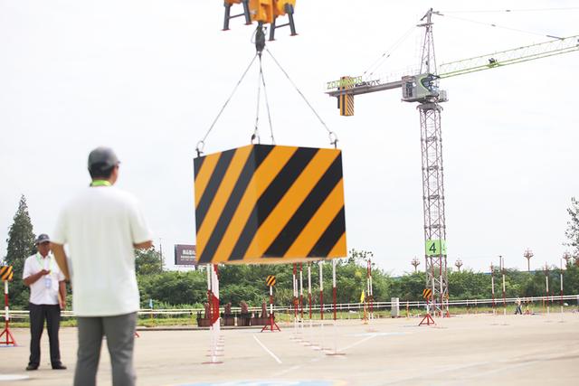 ▲2017年“中聯(lián)杯”全國(guó)吊裝競(jìng)賽,選手正在進(jìn)行實(shí)際操作比賽