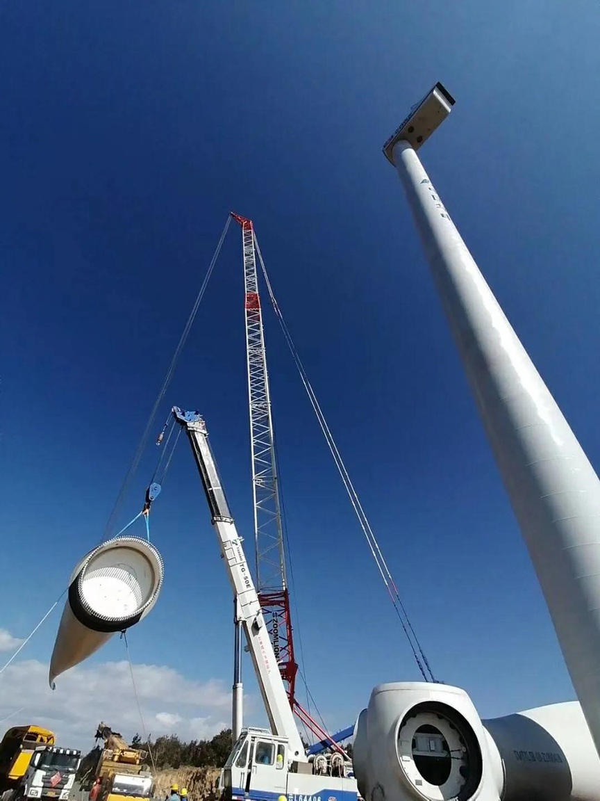 ?此次吊裝的機(jī)型單機(jī)容量3.3兆瓦,輪轂中心高度達(dá)100米,葉輪直徑達(dá)146米,掃風(fēng)面積16700余平方米,主臂102米,固定副臂7米;吊鉤**大起升高度可達(dá)106米,**大起重量140噸。隨著41號(hào)風(fēng)機(jī)葉輪緩緩上升與機(jī)艙傳動(dòng)鏈合攏,標(biāo)志著西南地區(qū)**大單機(jī)容量為3.3兆瓦的首臺(tái)風(fēng)機(jī)吊裝成功,同時(shí)該臺(tái)風(fēng)電機(jī)組刷新了云南省風(fēng)電機(jī)組**大功率等級(jí)紀(jì)錄,成為西南地區(qū)單機(jī)容量**大、單臺(tái)風(fēng)機(jī)功率**大、風(fēng)輪直徑**大、陸上海拔**高的發(fā)電機(jī)組。