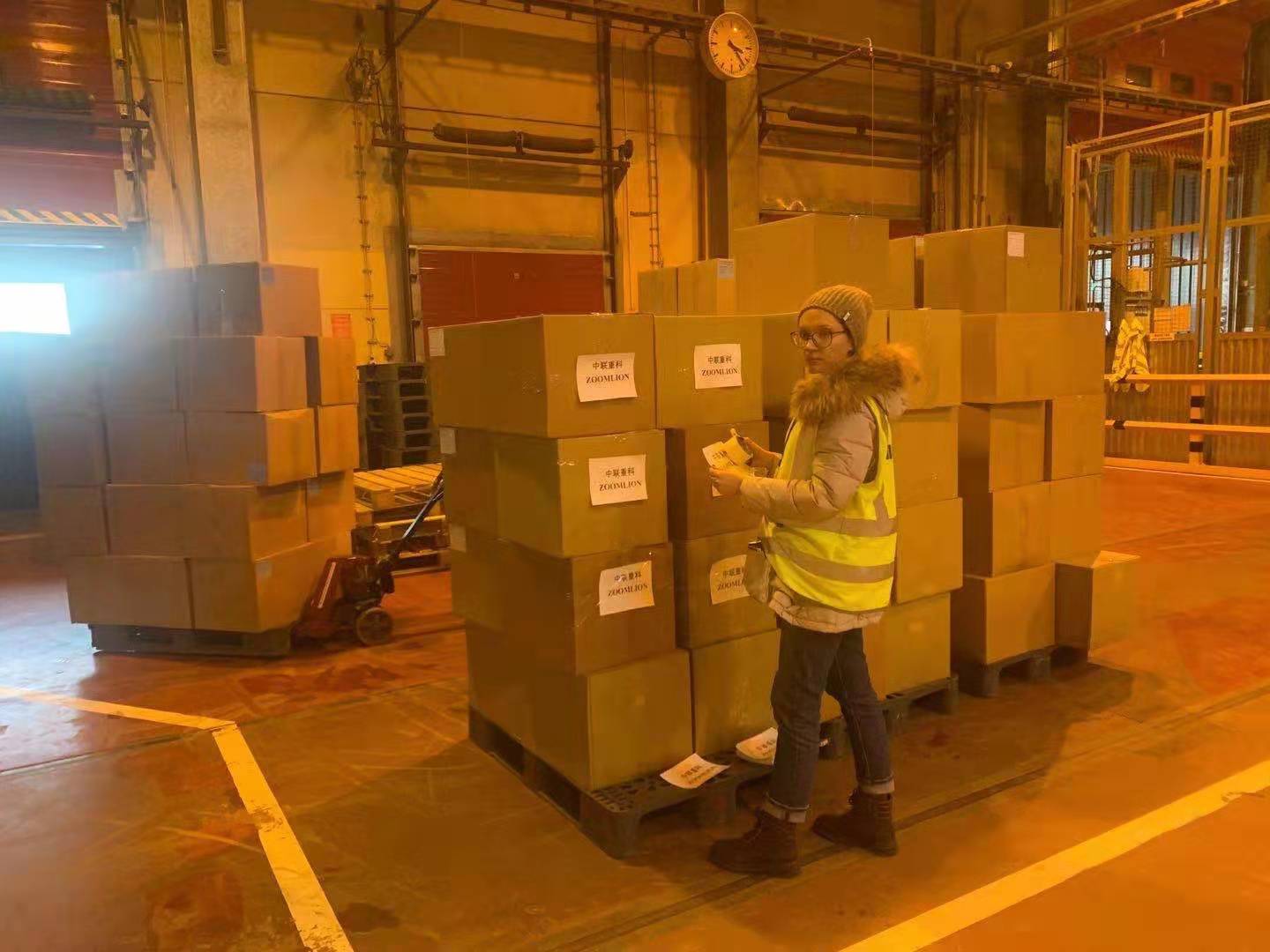 △2月初,中聯(lián)重科白俄員工在莫斯科機(jī)場(chǎng)寄運(yùn)防疫物資