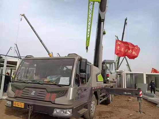 △中聯(lián)重科起重機正在石家莊的疫情防控集中隔離點作業(yè)