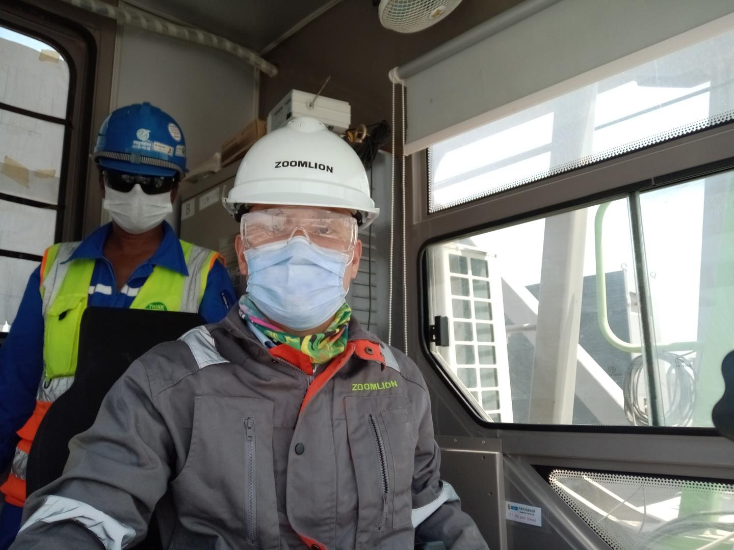 △中聯(lián)重科服務(wù)工程師羅文星在項(xiàng)目現(xiàn)場服務(wù)