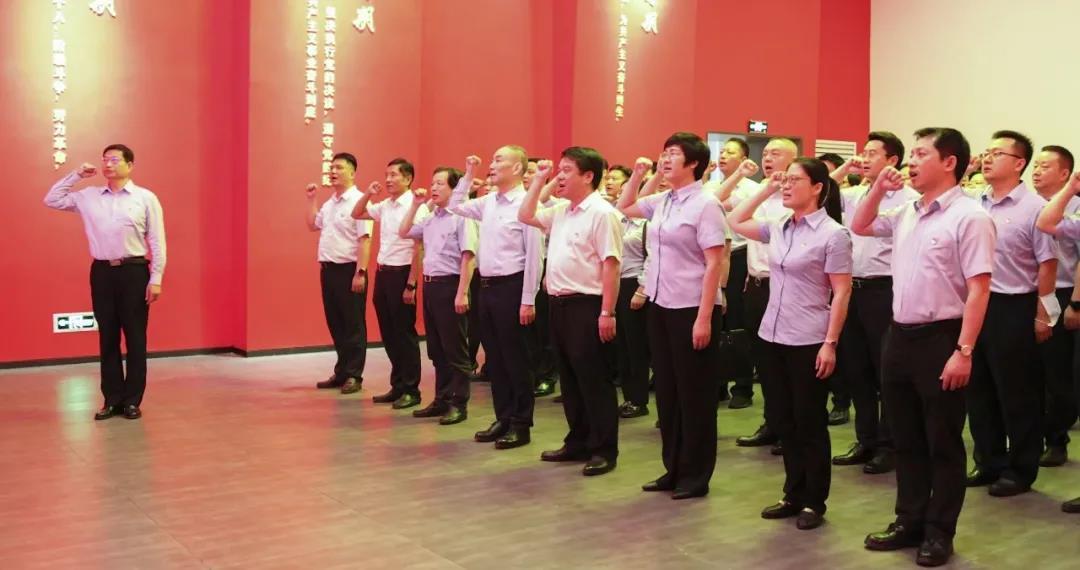 ? ? ? ?在宣誓大廳,面對(duì)鮮艷的中國(guó)共產(chǎn)黨黨旗,全體黨員干部重溫入黨誓詞,鏗鏘有力的宣誓聲響徹大廳。