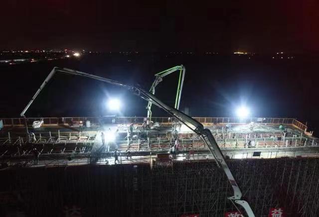 據(jù)了解,除了矗立長江中流擊水的中聯(lián)重科萬噸米級塔機(jī),中聯(lián)重科泵車等設(shè)備也正在為項目建設(shè)提供助力。7月30日凌晨5點,經(jīng)過8個小時的連續(xù)奮戰(zhàn),常泰長江大橋北接線工程CT-TX1標(biāo)泰興東樞紐首聯(lián)現(xiàn)澆箱梁底腹板澆筑完成,項目正式進(jìn)入上部現(xiàn)澆結(jié)構(gòu)施工階段。其中負(fù)責(zé)澆筑的就有中聯(lián)重科混凝土泵車。