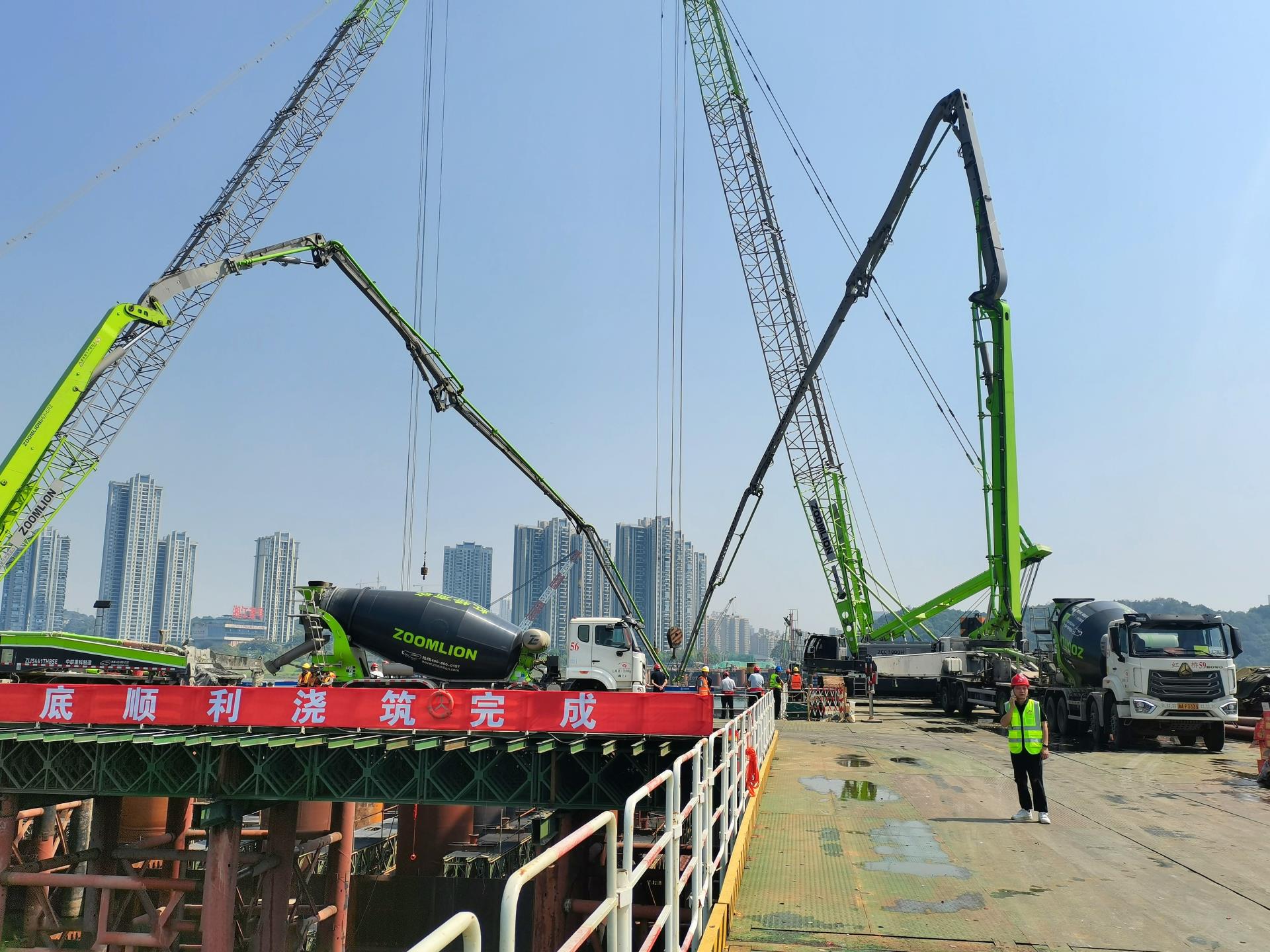 其主墩承臺設(shè)計為深埋式“啞鈴型”,鋼圍堰封底工作是**關(guān)鍵、也是連續(xù)作業(yè)時間**長的工序。為確保澆筑品質(zhì)和效率,施工方經(jīng)多方對比,**終選擇了中聯(lián)重科“凌云”系列泵車來完成任務(wù)。操作機(jī)手也對中聯(lián)重科的泵車情有獨(dú)鐘:“中聯(lián)的泵車臂架一直都很穩(wěn),打料快、油耗也低!”