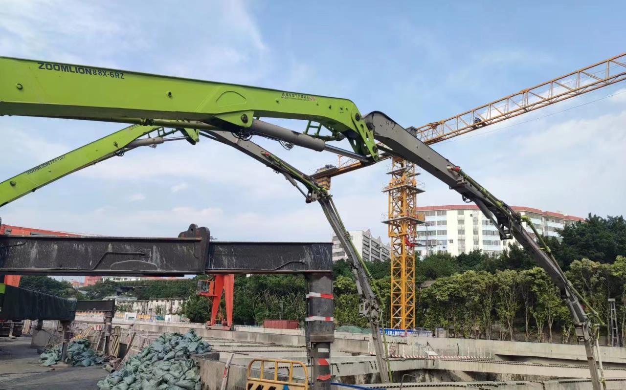 作為廣州地鐵集團“總部級”風(fēng)險重點管控點之一,該站共需澆筑混凝土約10萬方,為確保施工質(zhì)量和施工進(jìn)度,同時嚴(yán)格落實風(fēng)險管控,項目方選用了中聯(lián)重科“凌云”系列67米、59米長臂架泵車承擔(dān)任務(wù)。