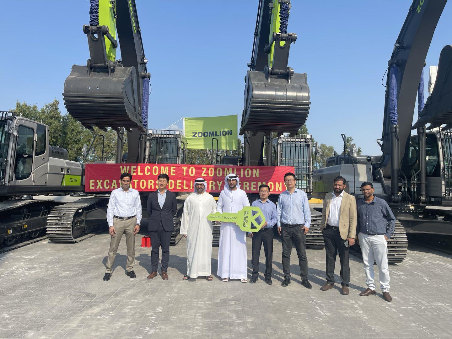 近日,中聯重科ZE370E大型挖掘機批量交付儀式在中聯重科海灣公司迪拜總部隆重舉行。中聯重科海外公司總經理助理范志德與阿布扎比客戶、中聯重科中東團隊共同見證了這一重要時刻。