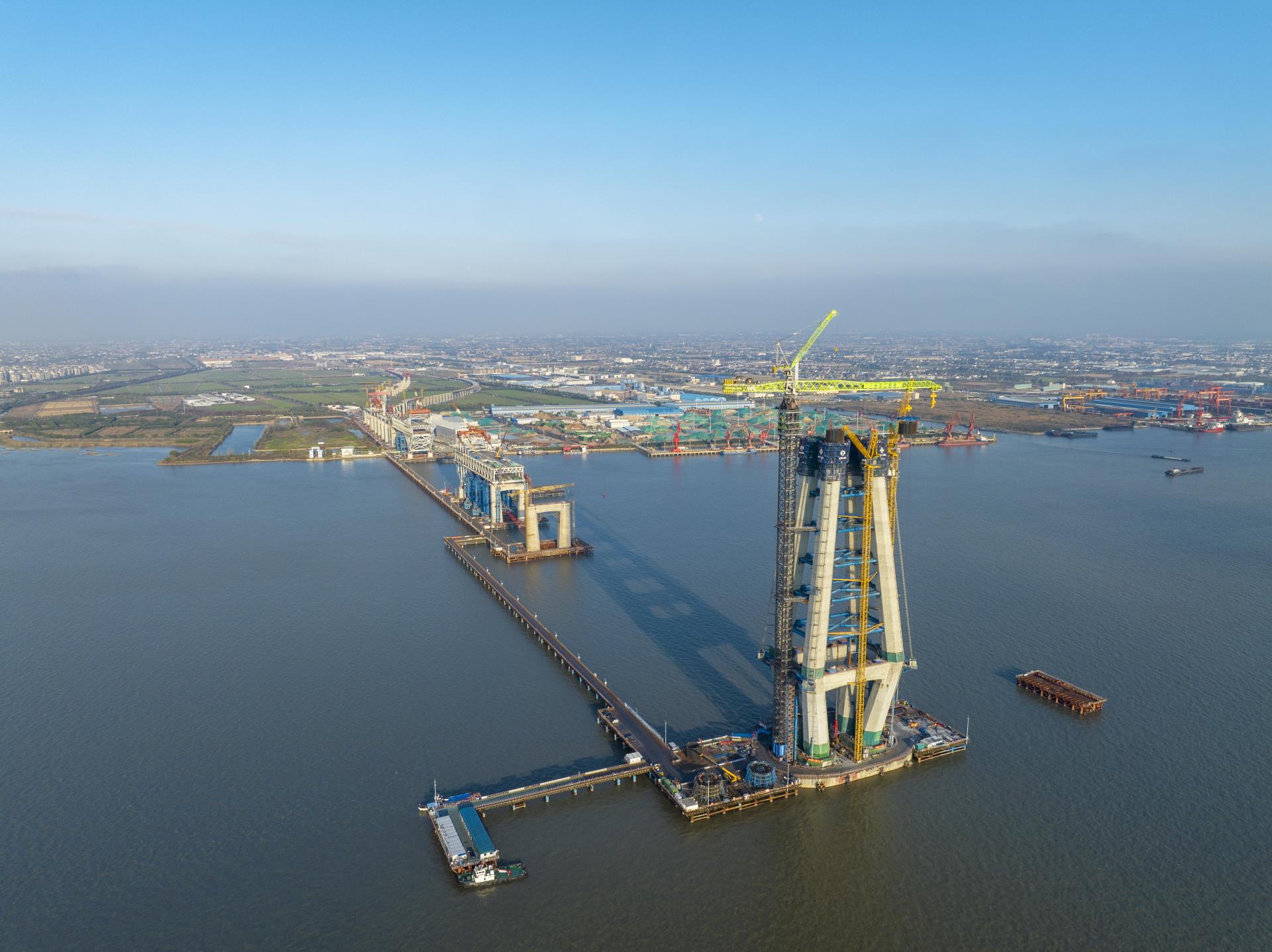 ▲W12000-450塔式起重機(jī)在常泰長(zhǎng)江大橋建設(shè)現(xiàn)場(chǎng)