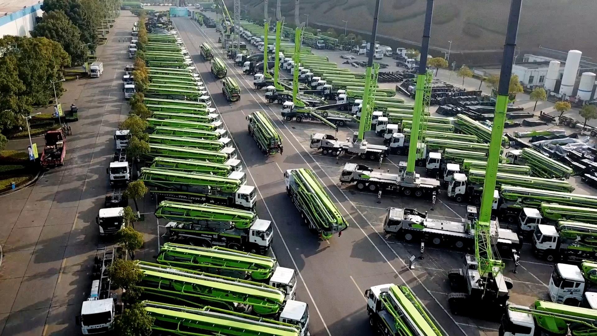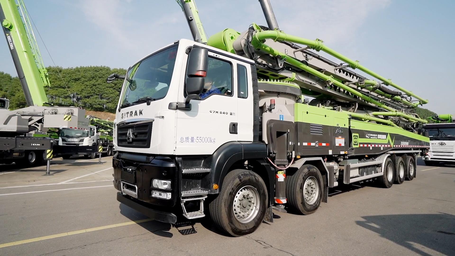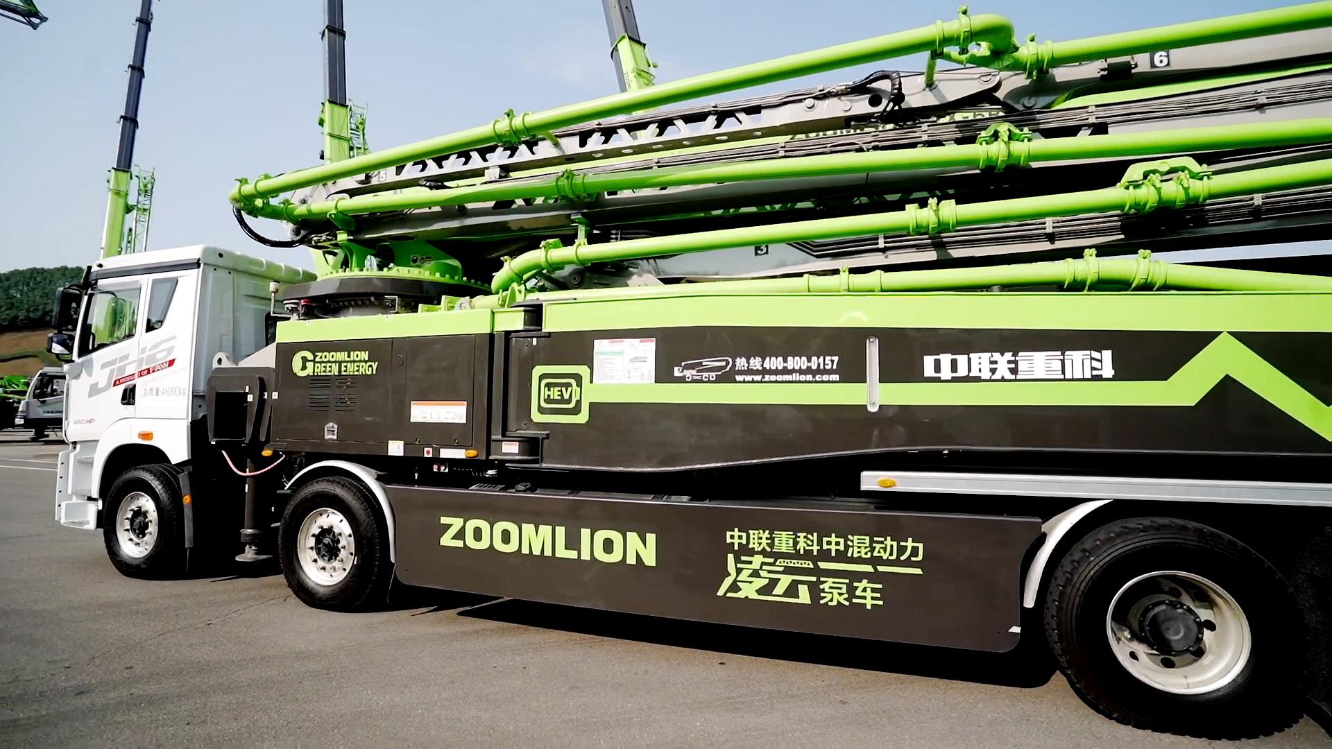 ▲中聯(lián)重科推出的62米中混泵車