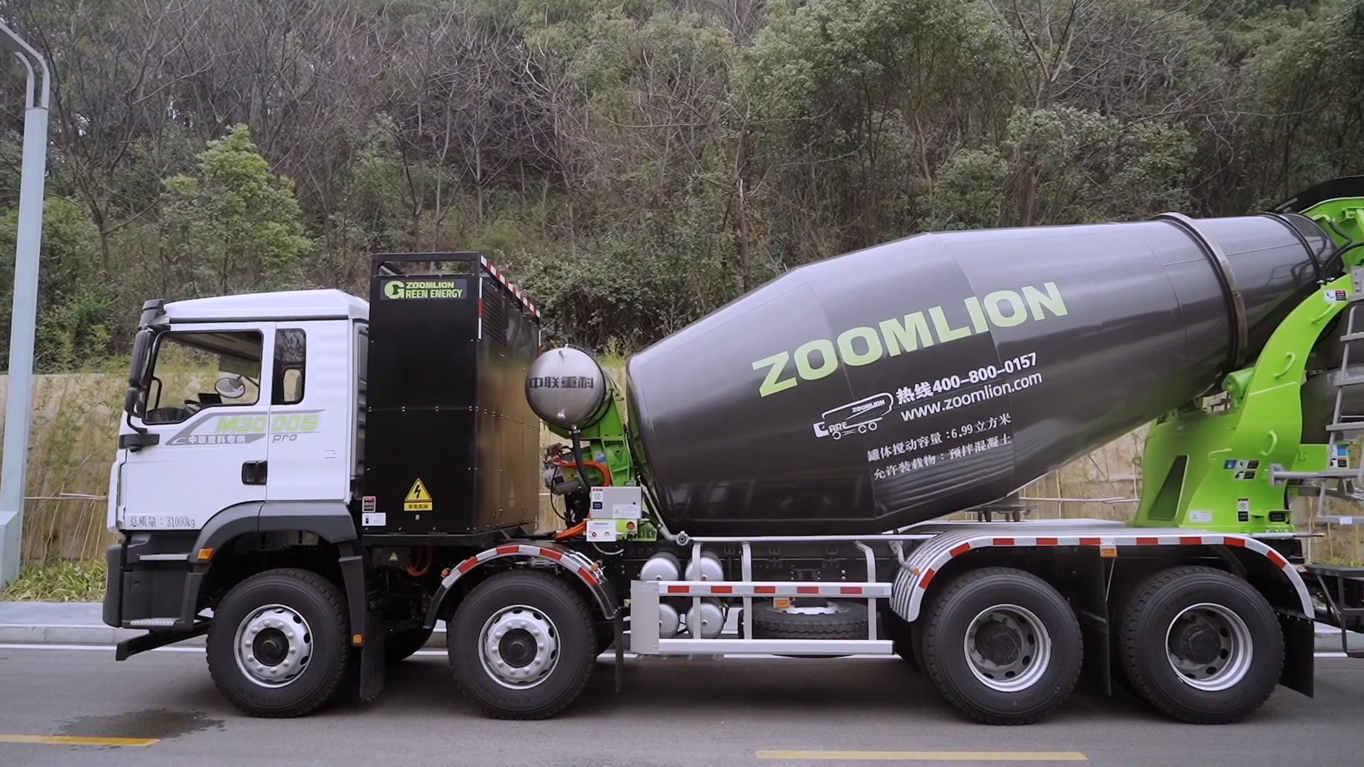 ▲中聯(lián)重科打造的輕量化純電動(dòng)攪拌車