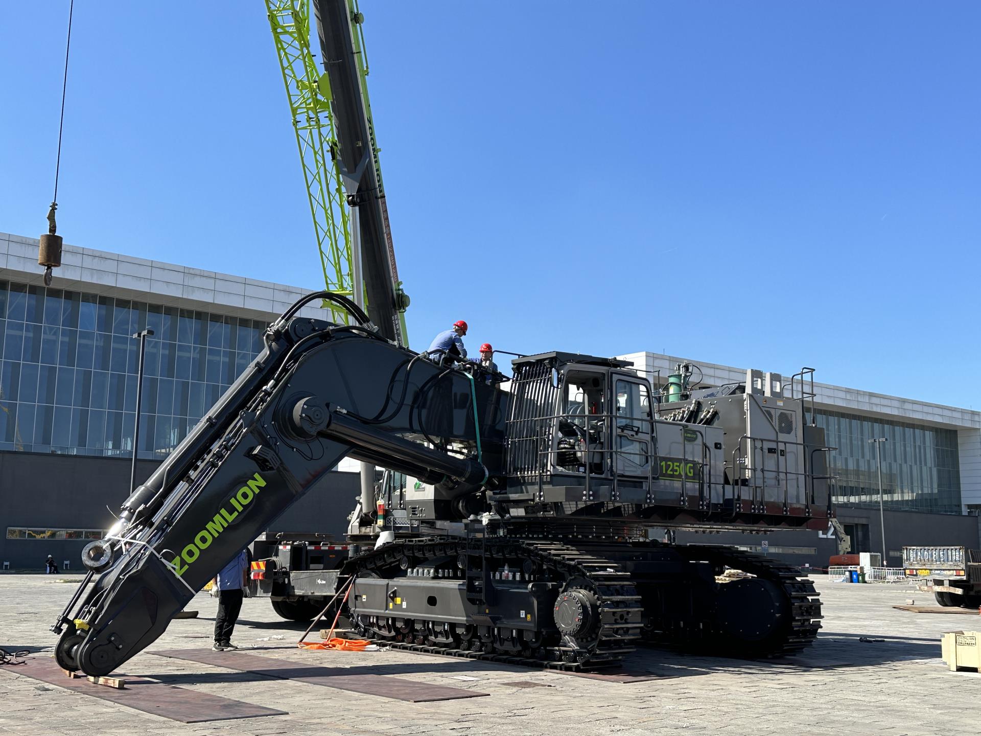 9月15日,經(jīng)過(guò)1500多公里長(zhǎng)途運(yùn)輸,一臺(tái)碩大的挖掘機(jī)順利落座在北京中國(guó)國(guó)際展覽中心(順義館)S101展位上。這是中聯(lián)重科首臺(tái)進(jìn)場(chǎng)的設(shè)備——125噸超大型挖掘機(jī)。它的進(jìn)場(chǎng),拉開了**十六屆北京展?(BICES 2023) 中聯(lián)重科展區(qū)布展的序幕。