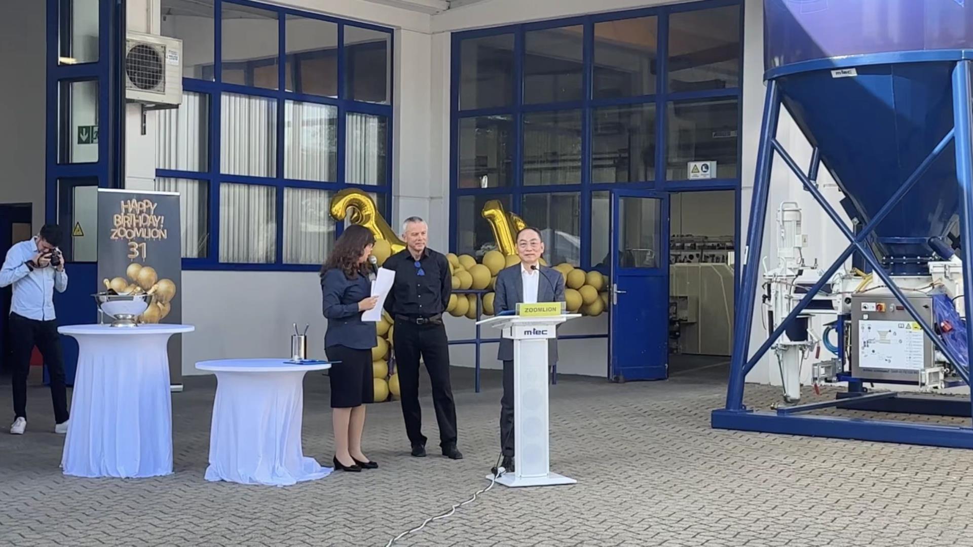 當(dāng)?shù)貢r間9月28日,中聯(lián)重科董事長、CEO詹純新與m-tec員工一起慶祝公司生日,并發(fā)表致辭向全球30多個國家的3萬名員工致以問候與祝福。