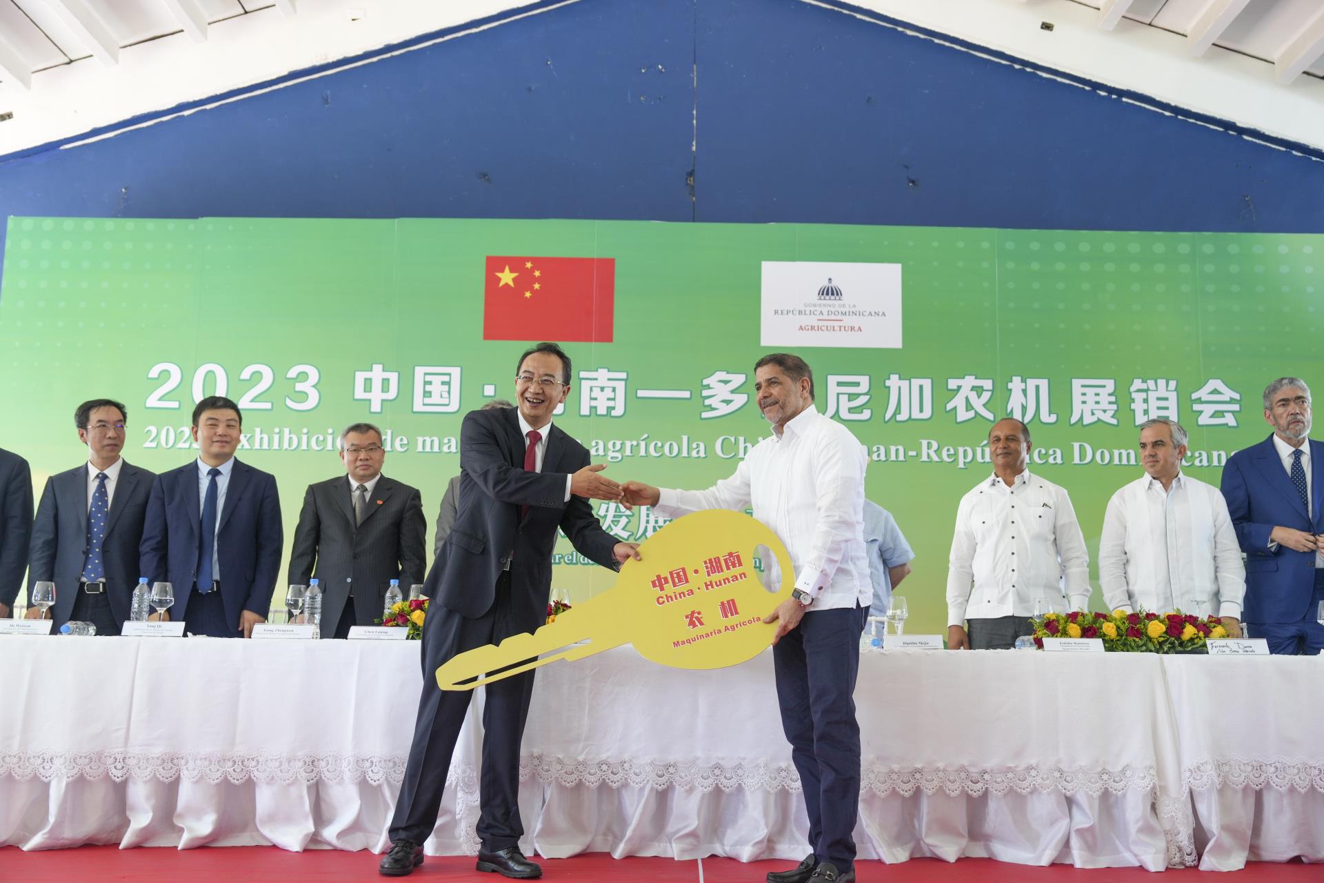 湖南省委常委、省委宣傳部部長(zhǎng)楊浩東,中國(guó)駐多米尼加大使陳魯寧,多米尼加前總統(tǒng)伊波利托·梅希亞,多米尼加農(nóng)業(yè)部部長(zhǎng)林博·克魯斯,中聯(lián)重科副總裁孫昌軍等出席開(kāi)幕式。中國(guó)·湖南—多米尼加農(nóng)機(jī)展銷(xiāo)會(huì)為期3天,旨在加強(qiáng)湖南省與多米尼加在農(nóng)業(yè)領(lǐng)域的交流互鑒,深化雙方農(nóng)業(yè)合作,進(jìn)一步提高多米尼加農(nóng)業(yè)生產(chǎn)效率和質(zhì)量,為多米尼加農(nóng)業(yè)機(jī)械化、現(xiàn)代化發(fā)展增添新動(dòng)力,也為湖南省農(nóng)業(yè)企業(yè)國(guó)際化發(fā)展提供新機(jī)遇,實(shí)現(xiàn)互利共贏。
