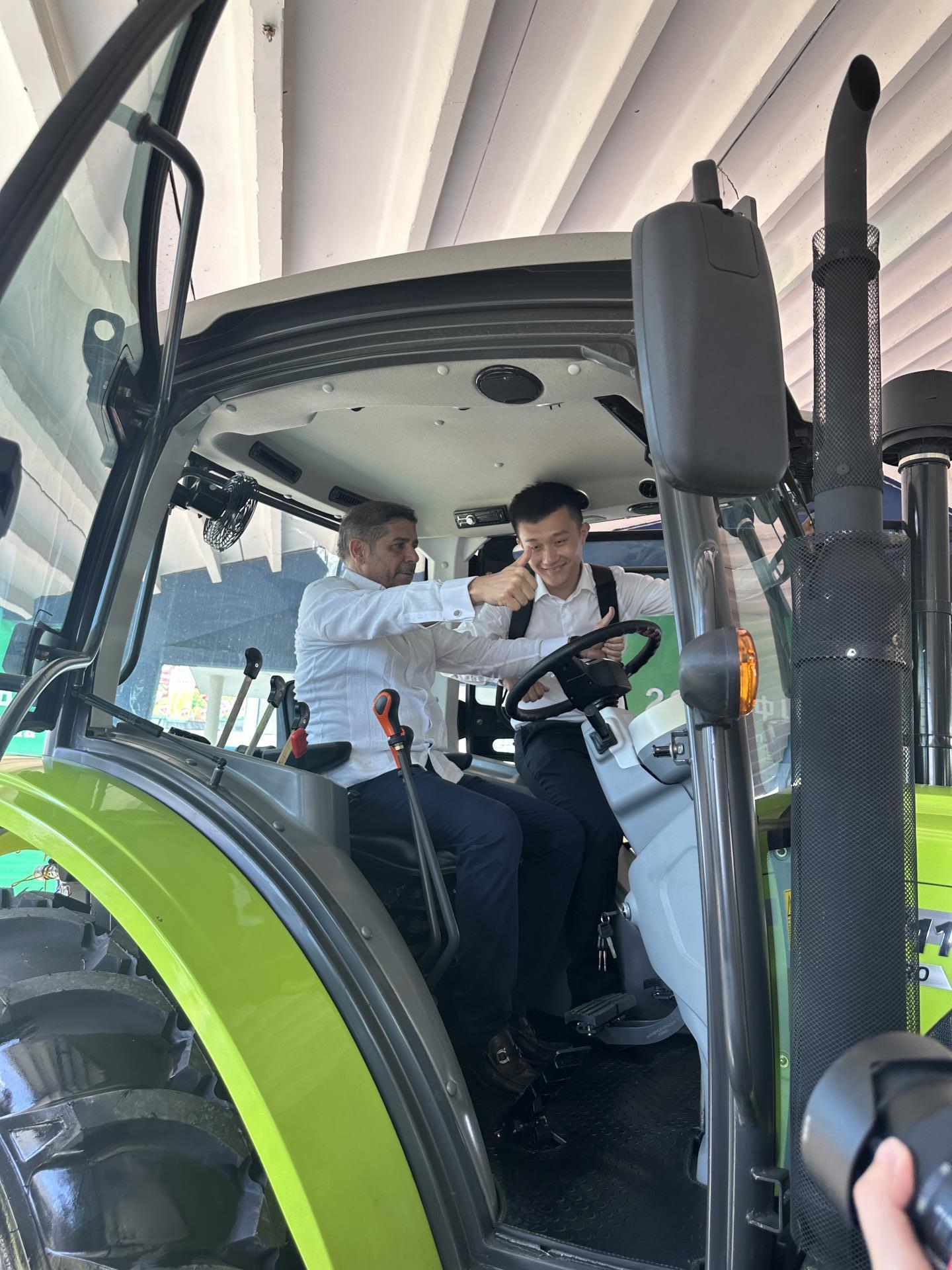 期間,多米尼加農(nóng)業(yè)部部長(zhǎng)林博·克魯斯饒有興致地登上中聯(lián)重科RN1104拖拉機(jī)駕駛室,他摸了摸方向盤(pán)、試了試操作桿,在親自體驗(yàn)中聯(lián)重科產(chǎn)品品質(zhì)后,他高興地豎起兩個(gè)大拇指稱(chēng)贊道“Muy bien(很好)!”