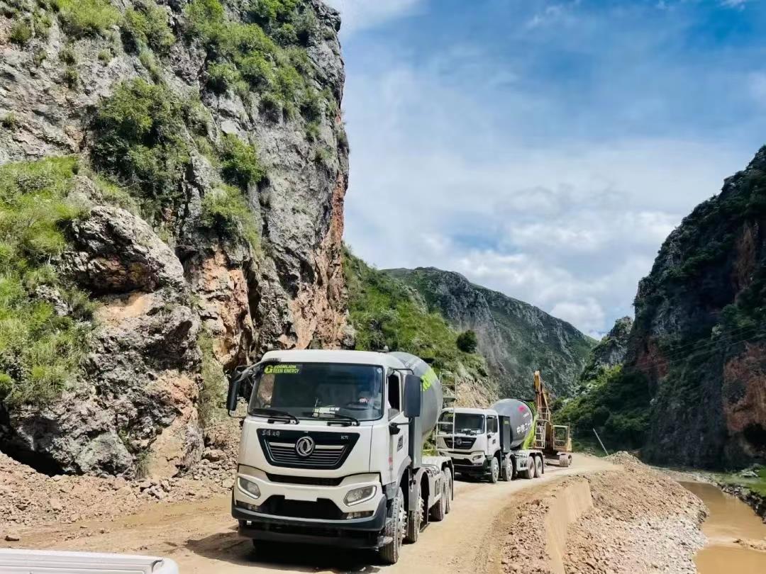 △川藏線上的中聯(lián)重科純電動(dòng)攪拌車(chē)