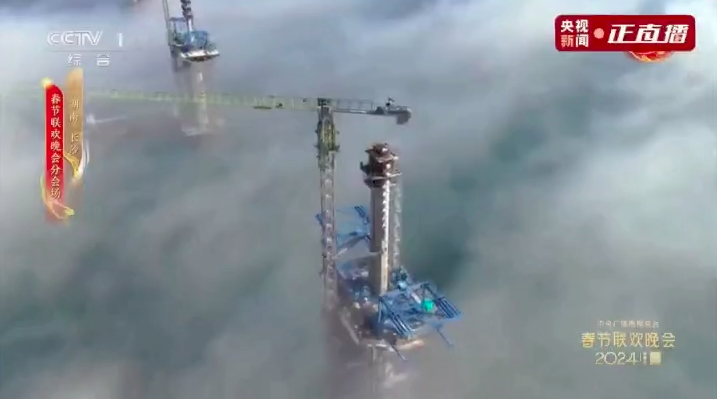 △春晚直播中,中聯(lián)重科塔機(jī)施工場景
