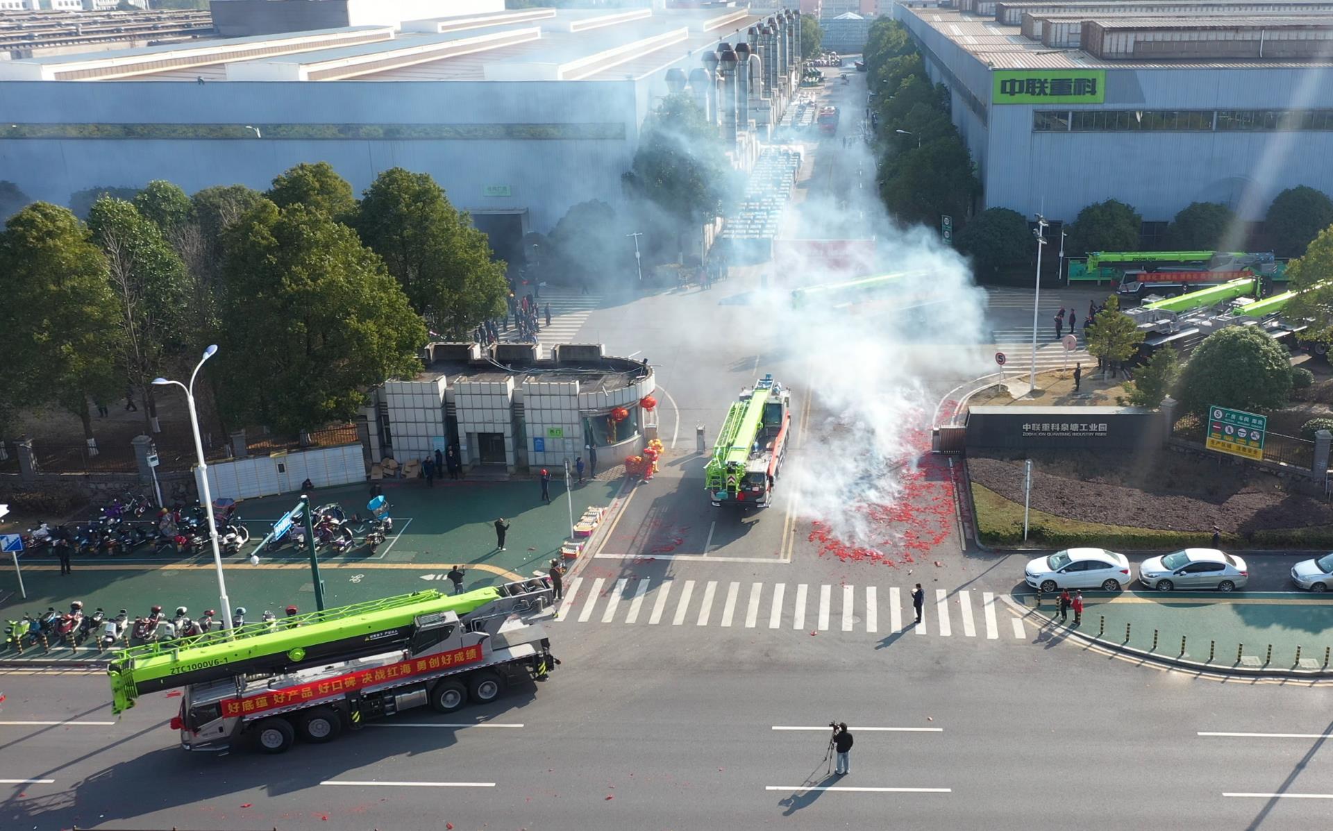 ▲中聯(lián)重科建起公司開門紅發(fā)車現(xiàn)場