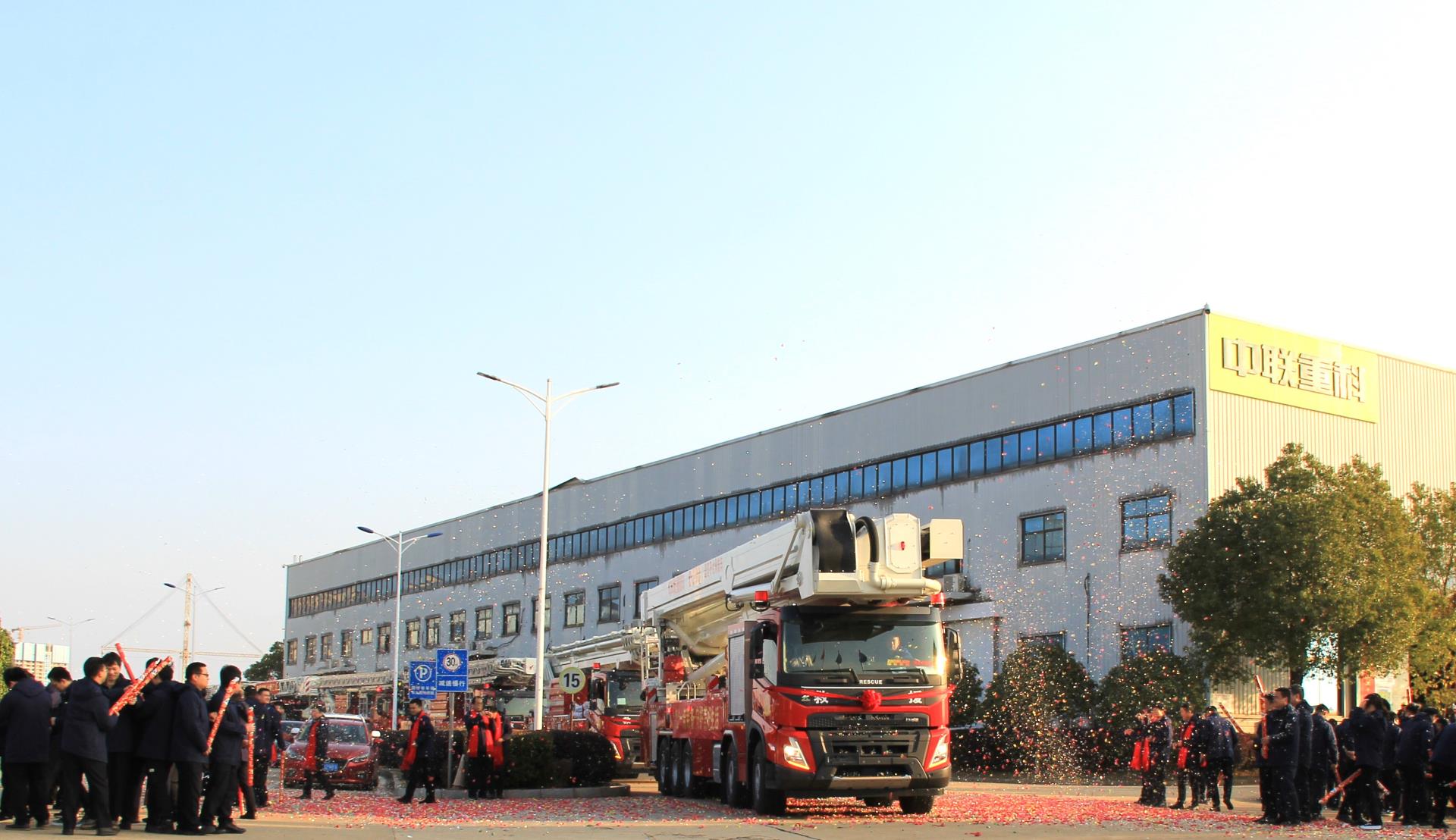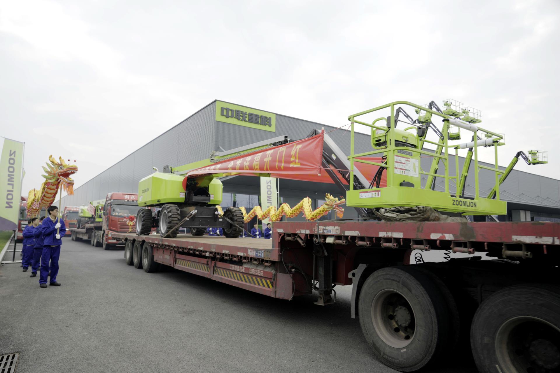 ▲中聯(lián)重科智能高機的發(fā)車現(xiàn)場