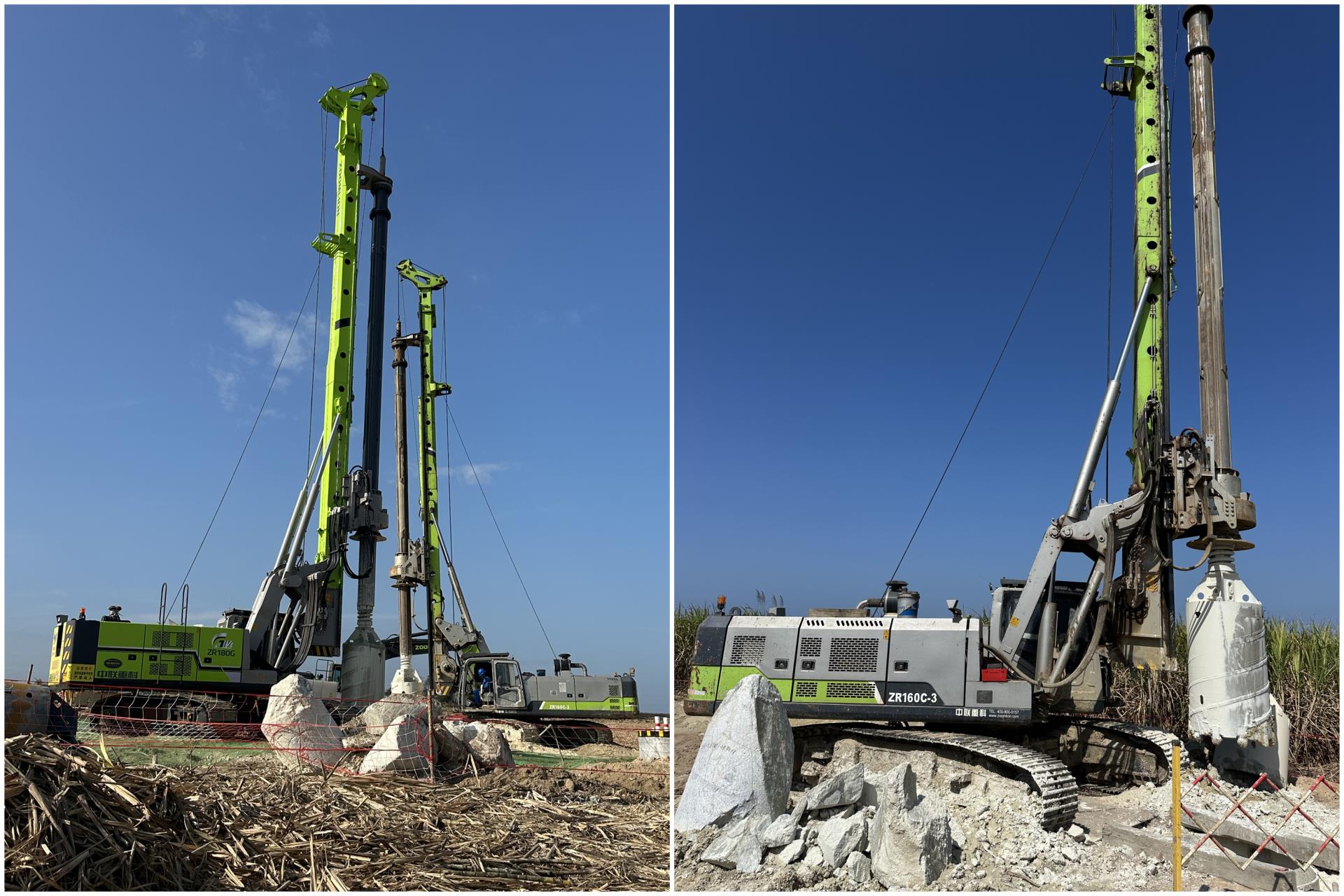 據(jù)項(xiàng)目負(fù)責(zé)人介紹,海南當(dāng)?shù)氐貙訌?fù)雜多變,巖層高低不等,普通旋挖鉆機(jī)設(shè)備施工困難重重,遇到砂土層極易出現(xiàn)塌孔,遇到中風(fēng)化花崗巖層,截齒消耗較大,還容易出現(xiàn)取巖芯困難的問(wèn)題。中聯(lián)重科ZR180G旋挖鉆機(jī)具備高穩(wěn)定、高效率、高精準(zhǔn)的施工特點(diǎn),可實(shí)現(xiàn)一次性成孔,高度契合該項(xiàng)目需求,對(duì)比同類產(chǎn)品施工表現(xiàn)更出色。