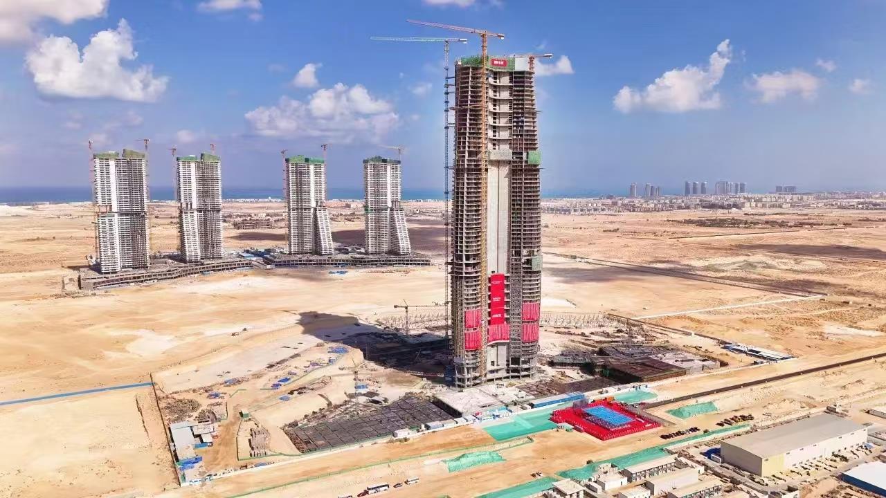 阿拉曼新城超高綜合體項(xiàng)目標(biāo)志塔全面竣工后,將宛如一顆璀璨的“藍(lán)寶石”,鑲嵌在地中海沿岸,成為埃及乃至非洲地區(qū)的新地標(biāo)。中聯(lián)重科設(shè)備深度參建了眾多非洲重要的基礎(chǔ)設(shè)施和民生工程,其中不少項(xiàng)目已成為中非合作典范。
