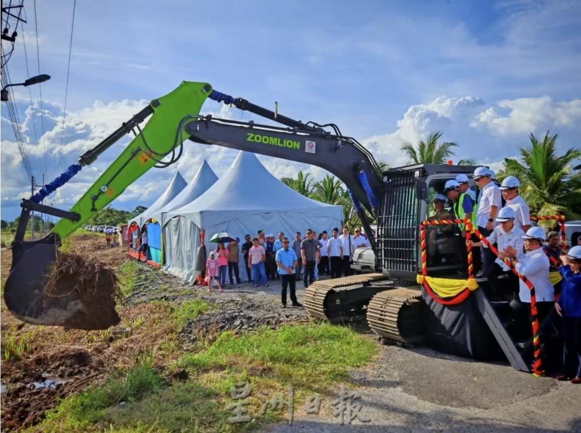 △儀式現(xiàn)場(chǎng)的中聯(lián)重科挖掘機(jī)(圖片來源:馬來西亞《星洲日?qǐng)?bào)》)