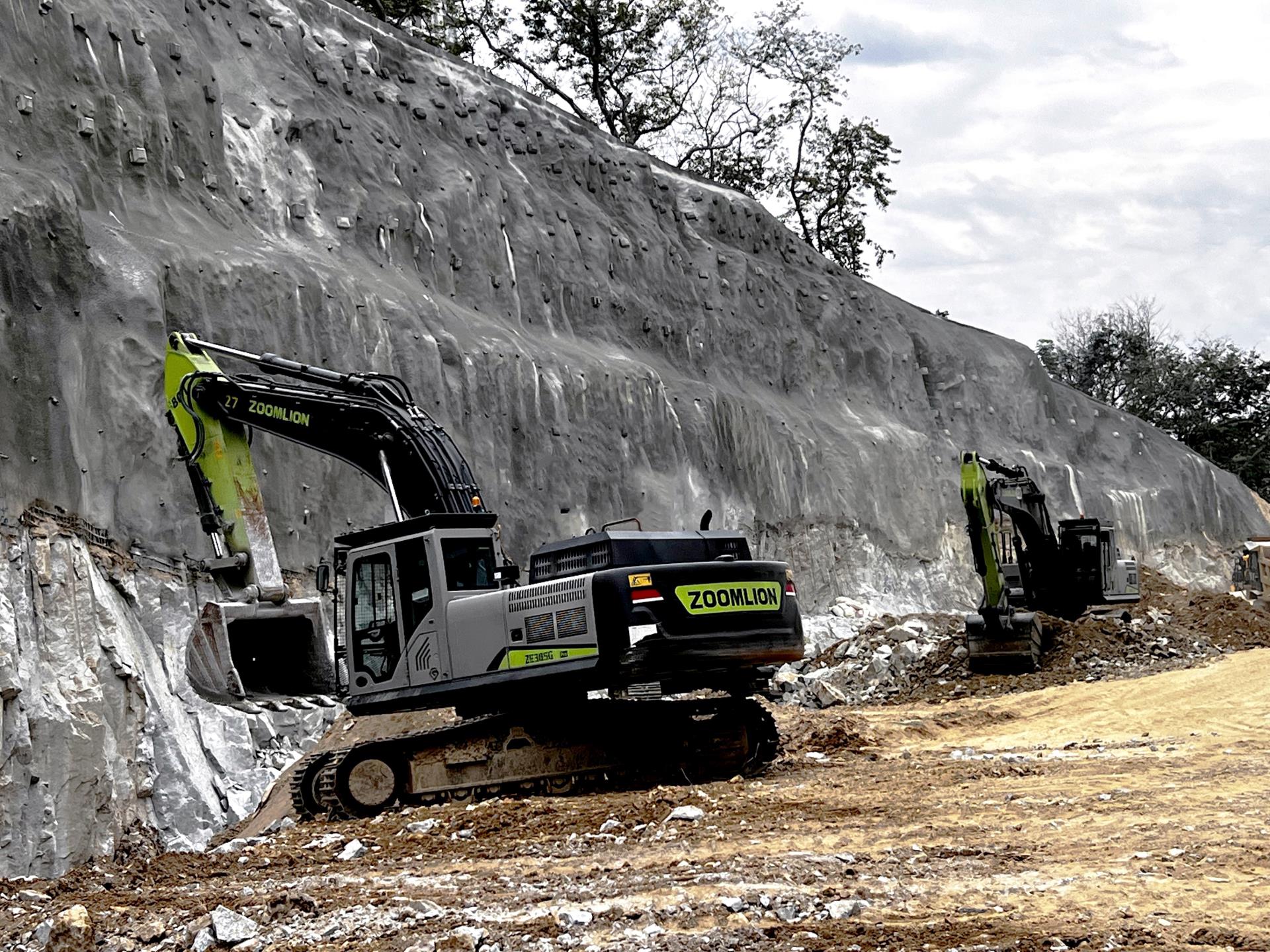 ▲中聯(lián)重科挖掘機在項目施工現(xiàn)場