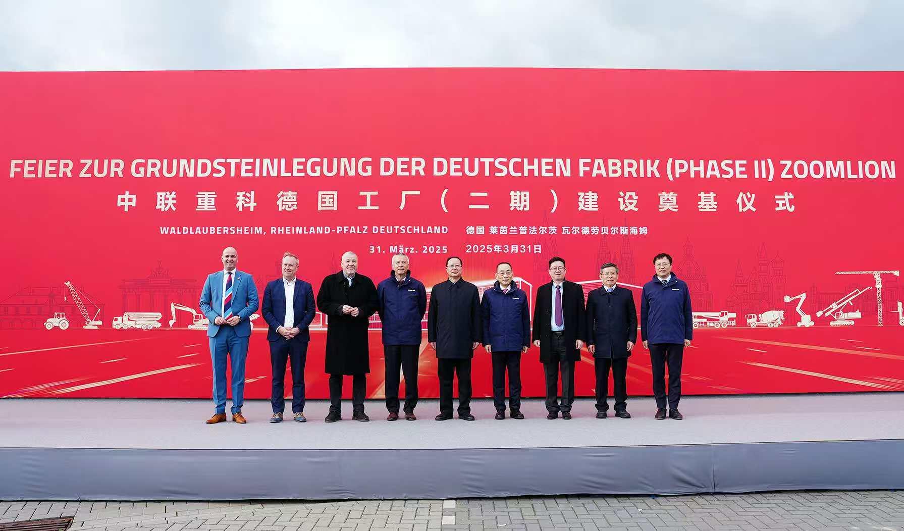 當(dāng)?shù)貢r(shí)間3月31日,中聯(lián)重科德國(guó)工廠(chǎng)二期奠基儀式在德國(guó)瓦爾德勞貝爾斯海姆舉行,將擴(kuò)建廠(chǎng)房進(jìn)行產(chǎn)業(yè)拓展升級(jí),打造集產(chǎn)品展示、銷(xiāo)售、生產(chǎn)和服務(wù)于一體的綜合性海外生產(chǎn)基地,持續(xù)加速企業(yè)全球化發(fā)展。率湖南省代表團(tuán)訪(fǎng)問(wèn)德國(guó)的湖南省委副書(shū)記、省長(zhǎng)毛偉明,德國(guó)聯(lián)邦議院議員喬·溫加頓博士,中國(guó)駐法蘭克福總領(lǐng)事黃昳揚(yáng),中聯(lián)重科董事長(zhǎng)、CEO詹純新出席并致辭。