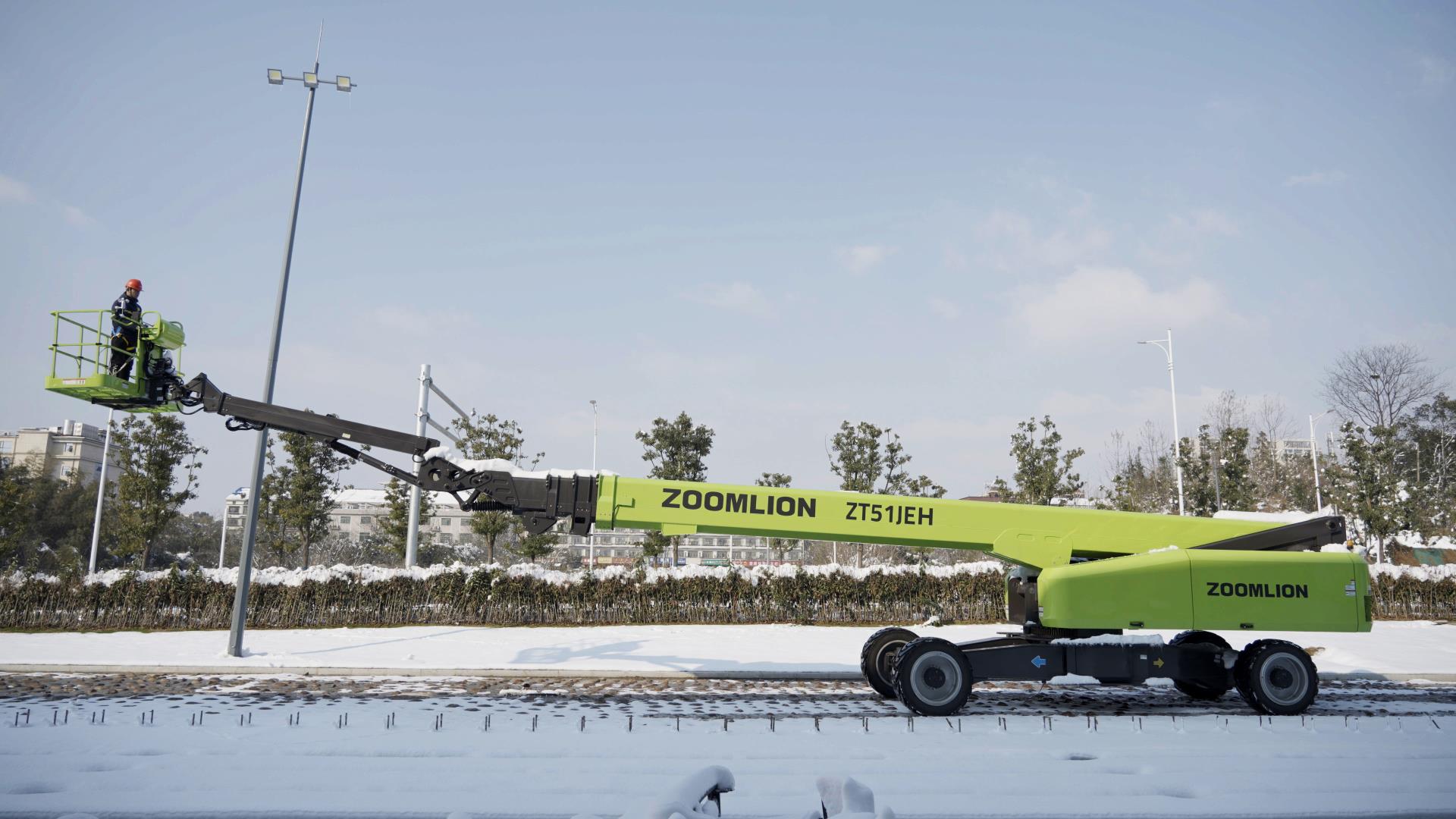 其中,中聯(lián)重科直臂式高空作業(yè)平臺ZT51JEH通過獨創(chuàng)的可油可電雙工作模式直擊行業(yè)痛點,在城區(qū)建筑群、室內廠房等環(huán)保要求高的場景中,可切換純電模式實現(xiàn)零排放、低噪音作業(yè);進入野外無電網覆蓋的基建現(xiàn)場時,又能通過燃油供電保障設備持續(xù)運轉,滿油滿電狀態(tài)下可續(xù)航7天以上,徹底解決了純電動高空設備“續(xù)航焦慮”。此外,ZT51JEH搭載低電壓平臺動力系統(tǒng),從源頭降低電氣安全風險,并結合超載保護、傾角預警、緊急停機等20余項全方位安全防護關鍵功能,構建起多重安全屏障,讓高空作業(yè)更可靠、更安心。