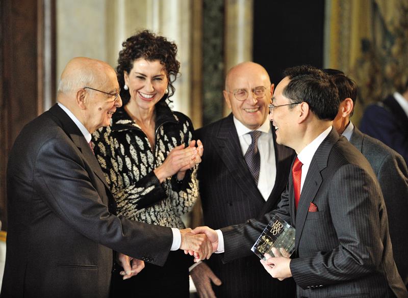 意大利總統(tǒng)納波利塔諾為中聯(lián)重科詹純新頒發(fā)“萊昂納多國(guó)際獎(jiǎng)”,這是中國(guó)企業(yè)家首次獲該國(guó)際獎(jiǎng)項(xiàng)。