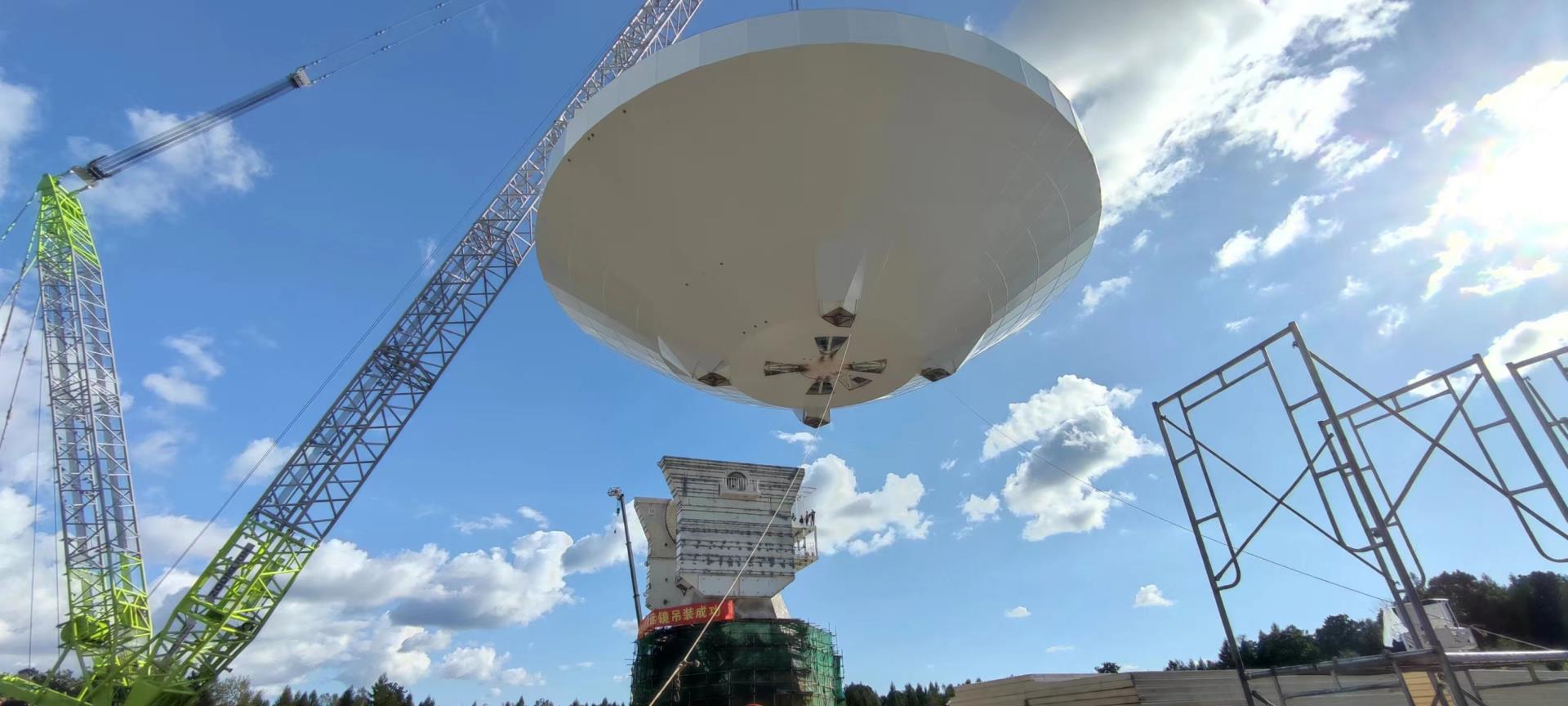 10月7日,由中國科學院上海天文臺與中國電科39所聯(lián)合研制的日喀則40米射電望遠鏡,在西藏自治區(qū)日喀則市由中聯(lián)重科QUY650履帶式起重機順利完成天線系統(tǒng)主反射體吊裝,標志著天線機械架設(shè)初步完成,為后續(xù)望遠鏡電氣調(diào)試等聯(lián)調(diào)奠定了堅實基礎(chǔ)。