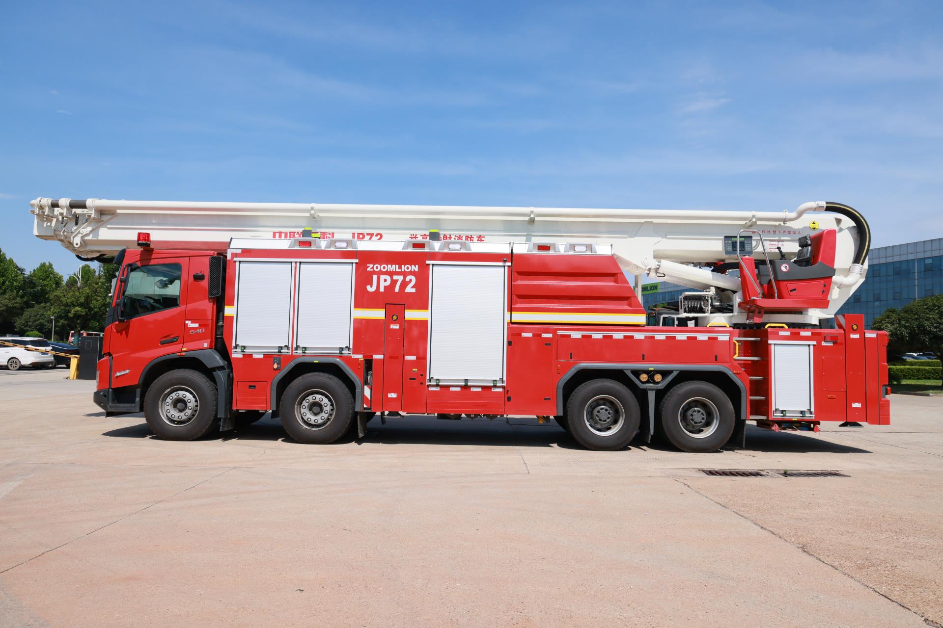中聯(lián)牌JP72型舉高噴射消防車,具備強(qiáng)大的滅火功能,整車性能優(yōu)越,快速高效,操作性、安全性及智能化控制水平處于國內(nèi)先進(jìn)水平。車輛采用輕量化四節(jié)伸縮主臂+三節(jié)側(cè)置伸縮曲臂結(jié)構(gòu),兼顧大高度、大幅度、大流量高空滅火作業(yè),可應(yīng)對(duì)各類復(fù)雜環(huán)境滅火救援,適用于城鎮(zhèn)、港口、工礦企業(yè)高層建筑以及石油、化工、油罐、倉庫等大型建筑火災(zāi)撲救。