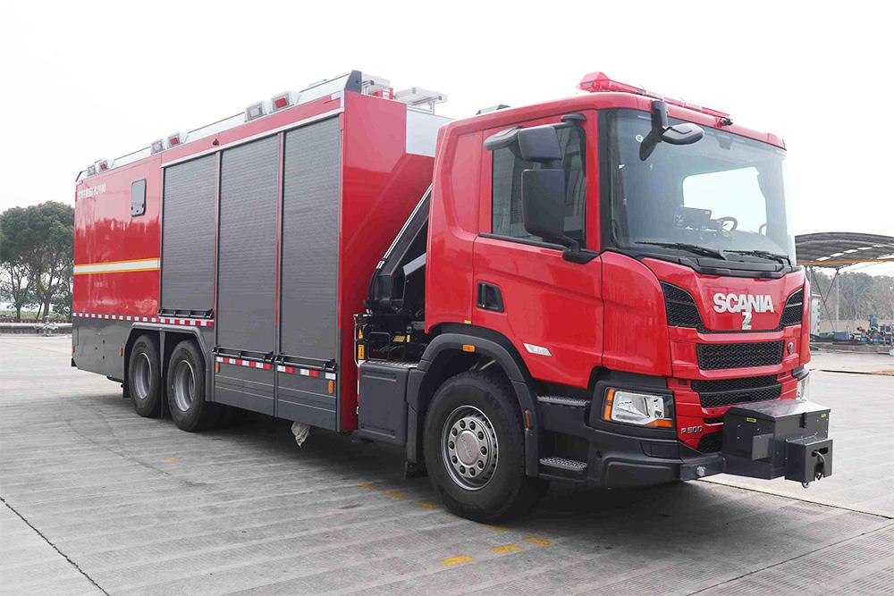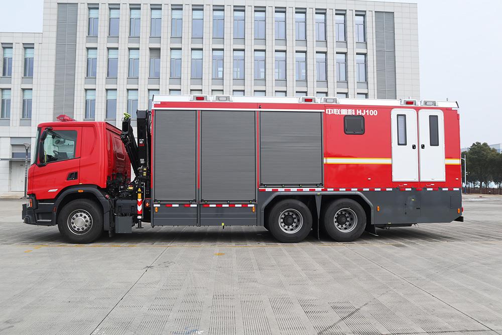 ? ? ? 中聯(lián)重科HJ100化學救援消防車是公司基于斯堪尼亞P500 6×4高性能底盤打造,集化學洗消、搶險救援、照明、重型起吊等多功能于一體的多功能救援平臺。該車采用輕量化鋁合金車身結構,配備國際頂級子系統(tǒng)(包括比利時TEKLITE照明系統(tǒng)、冠軍7.5噸級電動絞盤、希爾博起吊機等),可搭載100余件專業(yè)救援器材,集化學洗消、照明、供電、牽引、起吊、破拆、偵查、救援等功能于一體的多功能消防車;具備強大的搶險和化學救援能力,可滿足化學泄漏、地震災害、洪澇事故、車禍等復雜場景下的綜合救援需求,是國內(nèi)領先的模塊化多功能救援平臺。