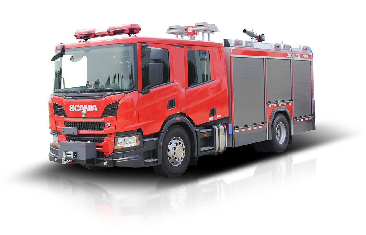 ? ? ? ?PM55城市主戰(zhàn)消防車采用原裝進(jìn)口斯堪尼亞P410改裝, 底盤作為車輛主要組成部分,除了行駛時(shí)承載以外,還是上裝部分的載體,同時(shí)為滅火系統(tǒng)正常工作,可靠、平穩(wěn)地傳遞動(dòng)力。容罐作為車輛的基礎(chǔ)件,用于裝載水及泡沫滅火劑。滅火系統(tǒng)由消防泵、泡沫混合系統(tǒng)、消防炮及管路、閥門等組成。為適應(yīng)消防滅火實(shí)戰(zhàn)需要,該車既可以使用車頂消防炮滅火,也可以使用水帶連接直流、開(kāi)花水槍或泡沫槍進(jìn)行滅火;同時(shí)可以利用車上攜帶發(fā)電照明系統(tǒng)對(duì)救援現(xiàn)場(chǎng)提供電力保障和照明;車輛還隨車攜帶了大量搶險(xiǎn)救援器材用于搶險(xiǎn)救援工作。