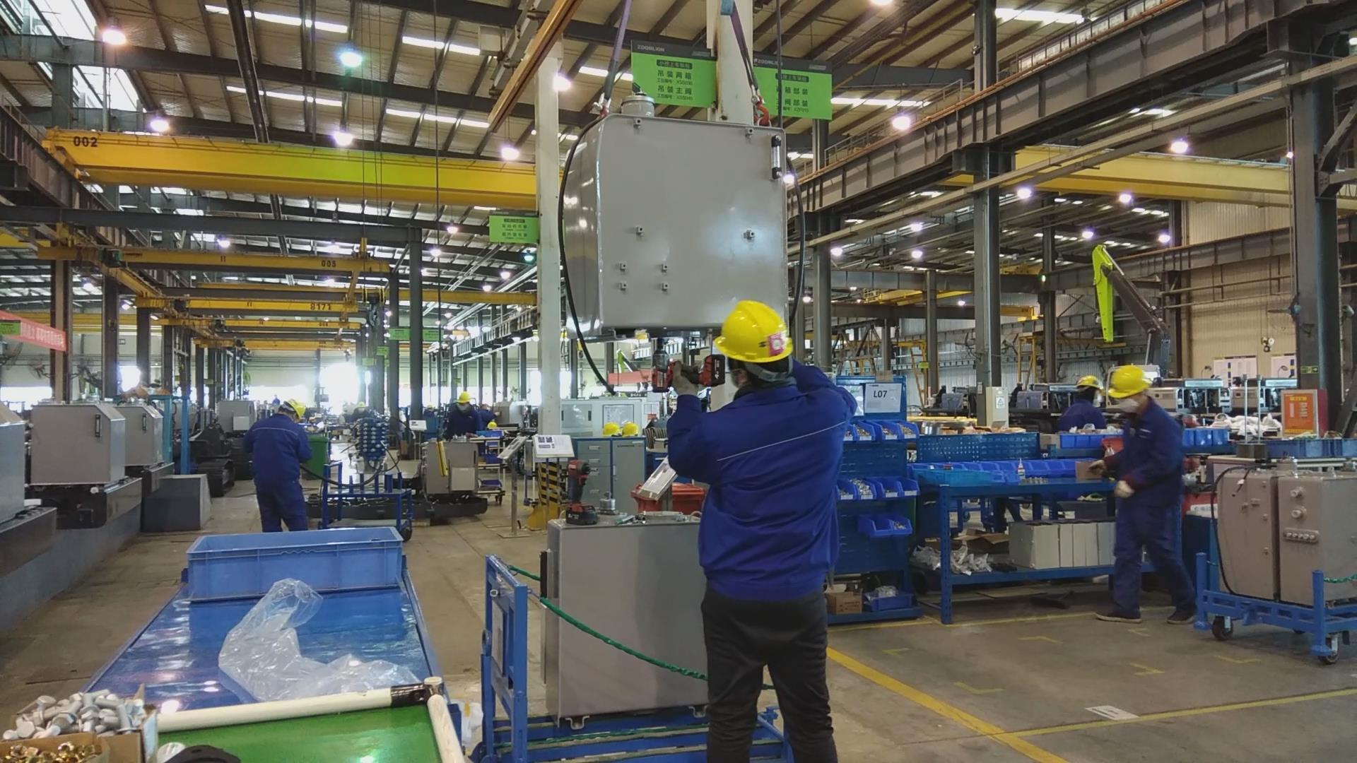 △2月19日 中聯(lián)重科土方機械分公司渭南工業(yè)園的工人們戴著口罩有序生產(chǎn)