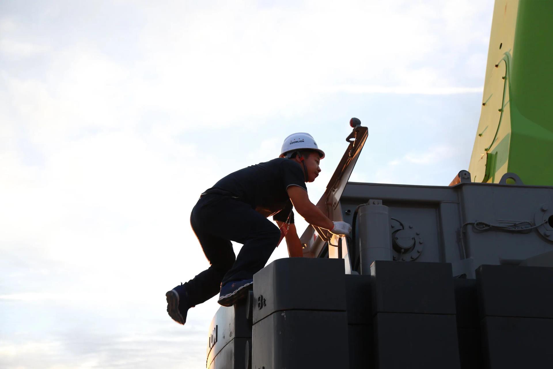 2020年,山東的客戶購(gòu)買了ZAT18000H起重機(jī)用于山西某風(fēng)電項(xiàng)目吊裝。當(dāng)時(shí),該客戶是中聯(lián)重科的新客戶,**一次購(gòu)買公司產(chǎn)品就選擇了1800噸的大塊頭;ZAT18000H起重機(jī)也是中聯(lián)重科當(dāng)年打造的一款針對(duì)風(fēng)電吊裝的新品;同時(shí),司機(jī)之前也沒(méi)有操作過(guò)中聯(lián)重科大噸位起重機(jī)的經(jīng)驗(yàn),可謂是“三新”挑戰(zhàn)。在近三個(gè)月的跟車服務(wù)過(guò)程中,邱志良和公司另一名服務(wù)工程師忙前忙后,調(diào)試設(shè)備、培訓(xùn)機(jī)手、協(xié)助轉(zhuǎn)場(chǎng)等等,不僅沒(méi)出現(xiàn)問(wèn)題,還實(shí)現(xiàn)了高效安裝,某一個(gè)月就安裝了7臺(tái)風(fēng)機(jī)?!爱?dāng)時(shí),晚上也是零下三四十度,但是整個(gè)過(guò)程卻很是愉快,學(xué)到了很多新的東西,也將過(guò)程中發(fā)現(xiàn)的問(wèn)題反饋給技術(shù),用于改進(jìn)產(chǎn)品?!?/span>